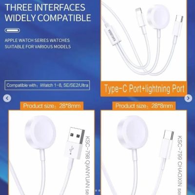 Incarcator Wireless KSC-799, Compatibil Apple Watch, Conector Type-C, 1M, Alb