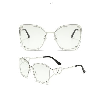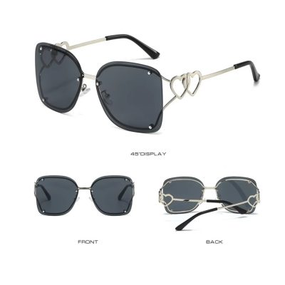 Ochelari de Soare, Fashion cu Inimi, Lentile Patrate, Protectie UV400, Negru Argintiu