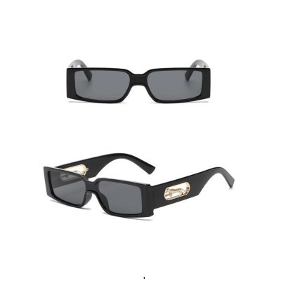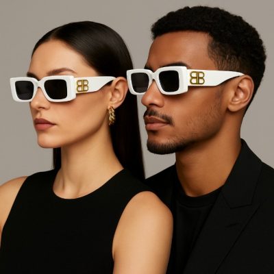 Ochelari de Soare BB Fashion, Rectangulari Negri, Detaliu Auriu, Protecție UV400, Alb