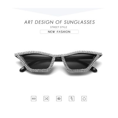 Ochelari de Soare Cat Eye, Cristale Strălucitoare, Protectie UV400, Negru Argintiu