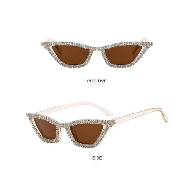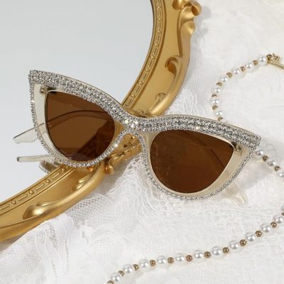 Ochelari de Soare Cat Eye, Cristale Strălucitoare, Protectie UV400, Maro