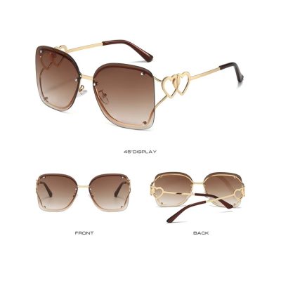 Ochelari de Soare, Fashion cu Inimi, Lentile Patrate, Protectie UV400, Maro