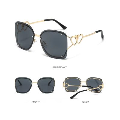 Ochelari de Soare, Fashion cu Inimi, Lentile Patrate, Protectie UV400, Negru Auriu