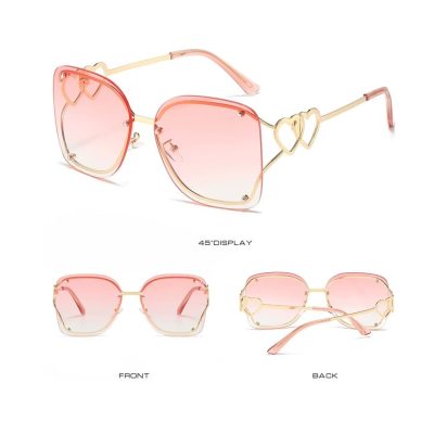 Ochelari de Soare, Fashion cu Inimi, Lentile Patrate, Protectie UV400, Roz