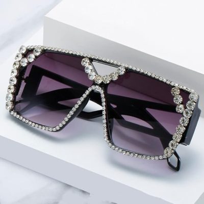 Ochelari de Soare Cat-Eye, Design Glamour, Cristale, Protecție UV400, Negru