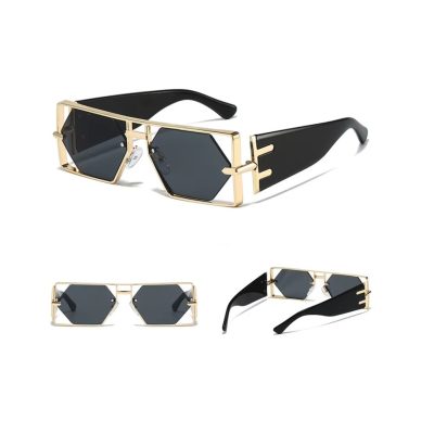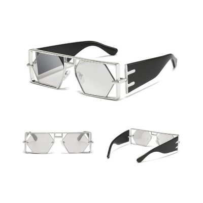 Ochelari Fashion, Design Hexagonal, Accente Metalice, Protectie UV400, Gri