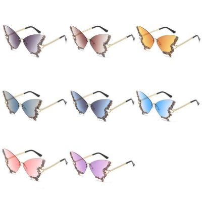 Ochelari Glamour Fluture, Cristale Multicolore, Festival Fashion, Protectie UV400, Albastru